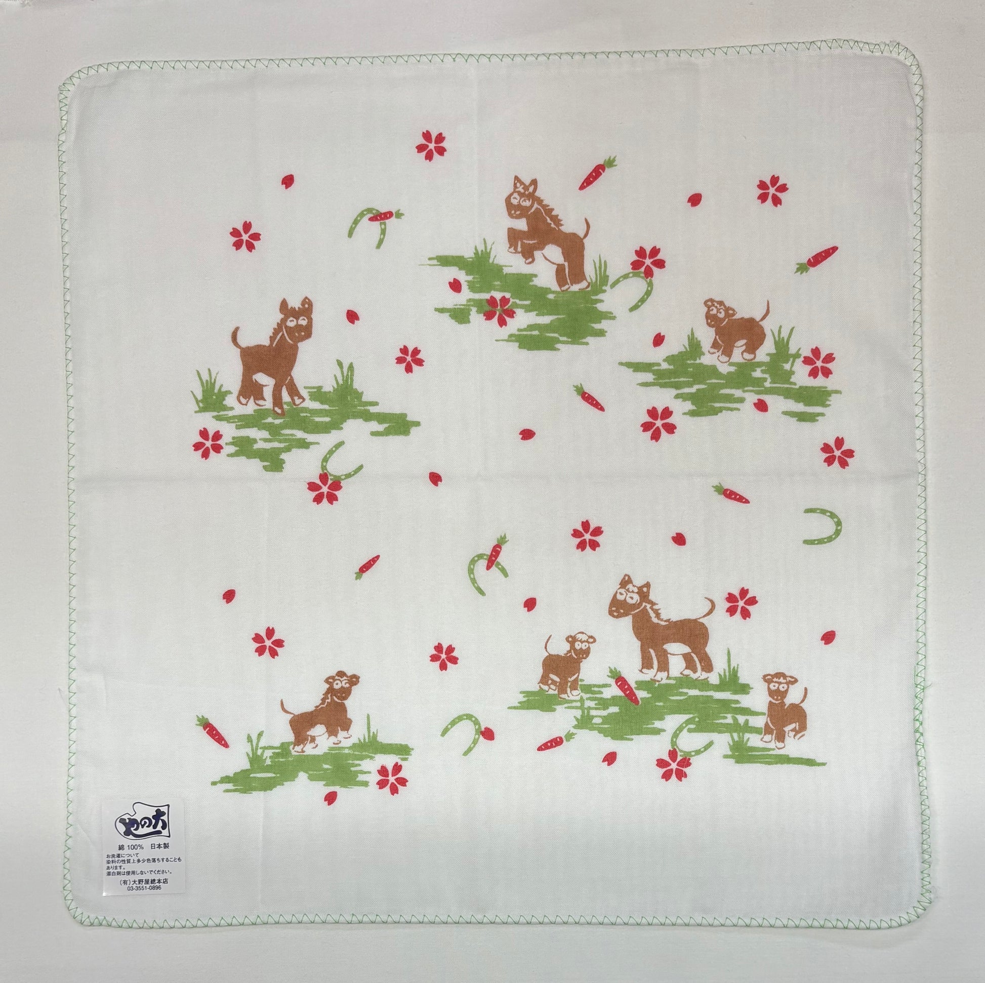【期間限定】大野屋總本店 オリジナル干支ガーゼハンカチ「午」(緑)