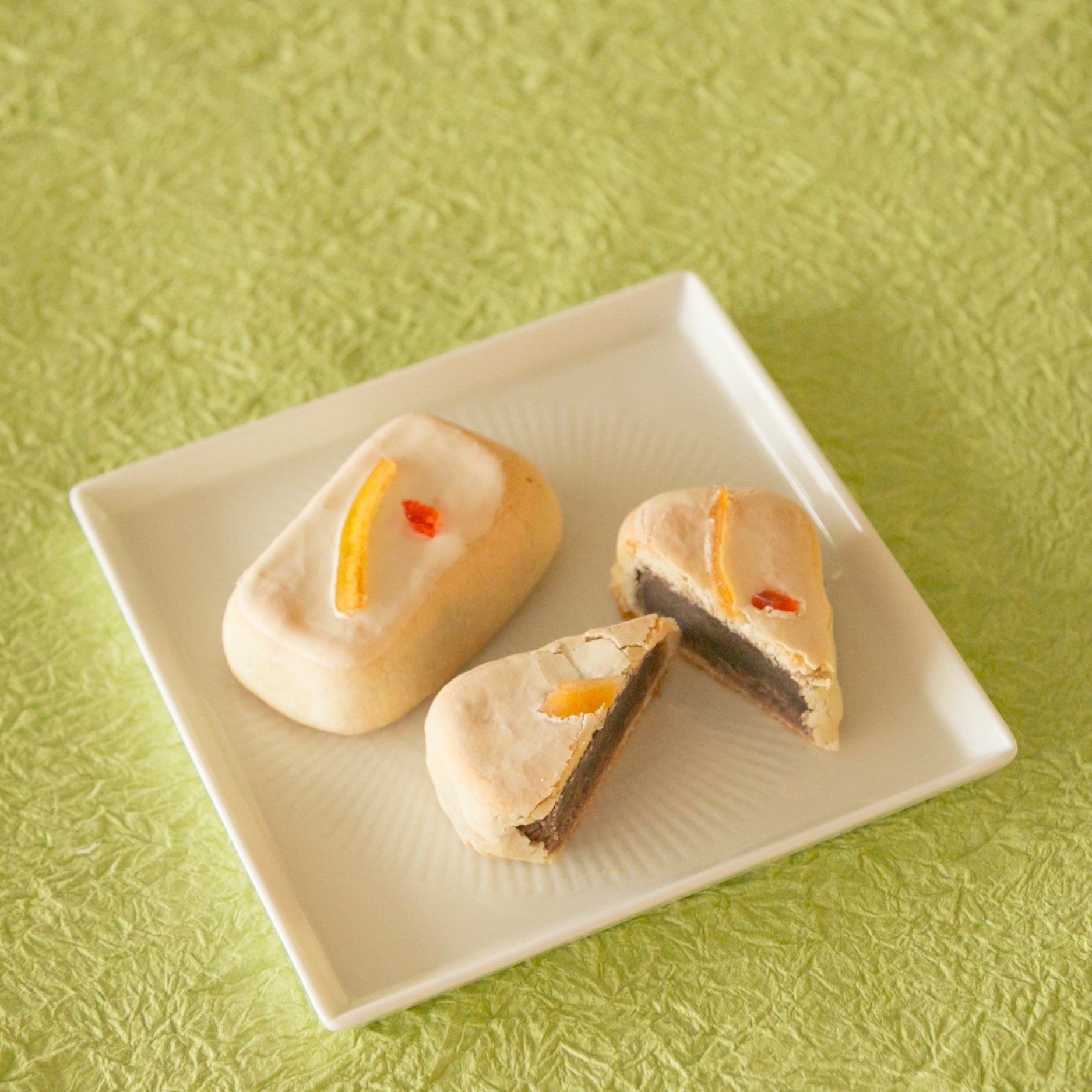 ■ももやま 黄身餡の焼き菓子。 古名を地震加藤誉の桃山という、桃山城の瓦を型どったもので、明治期の菓子の秀作です。