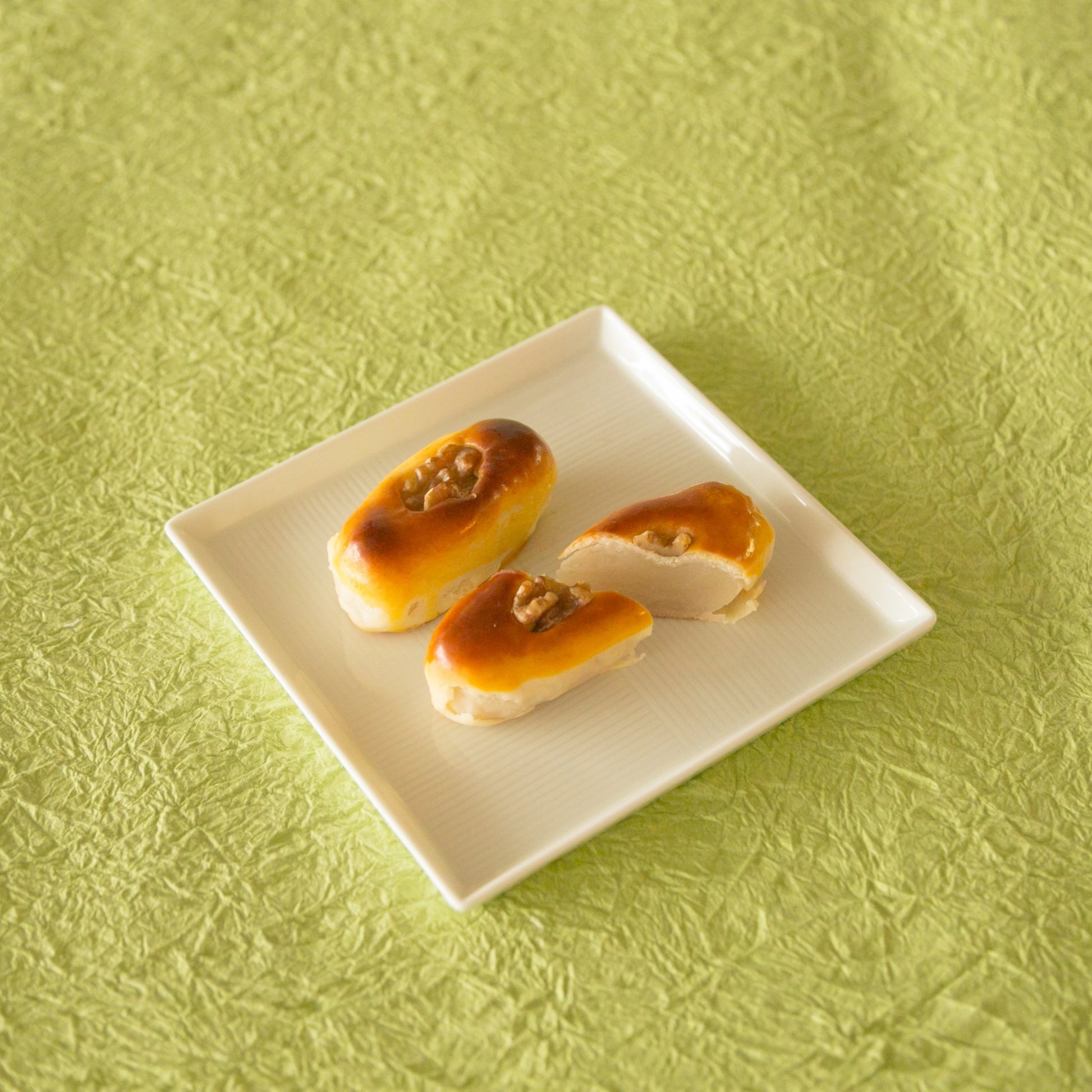 ■ももやま br> 黄身餡の焼き菓子。 br> 古名を地震加藤誉の桃山という、桃山城の瓦を型どったもので、明治期の菓子の秀作です。