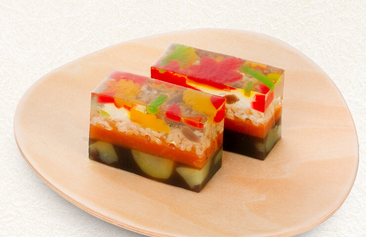 ・栗入りの羊羹、柿羊羹、錦玉羹を重ねた棹菓子