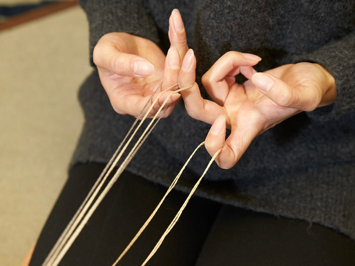 「龍工房」の福田 隆氏と福田 隆太氏による本ワークショップでは、組紐のルーツである指組紐の技法を学びながら、絹糸を使ってミサンガタイプのブレスレットを制作します。